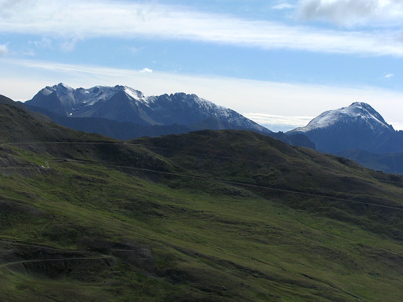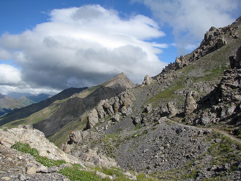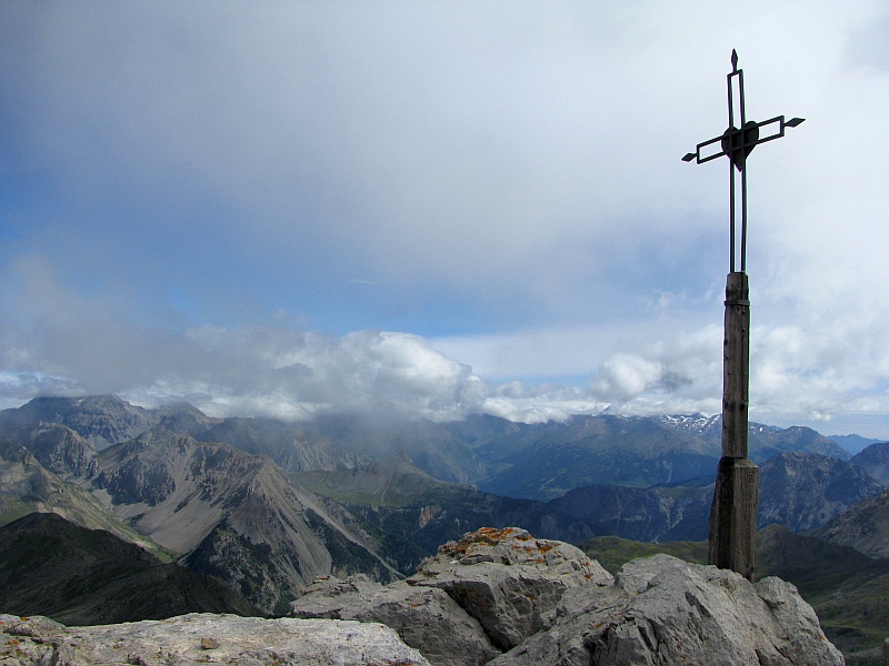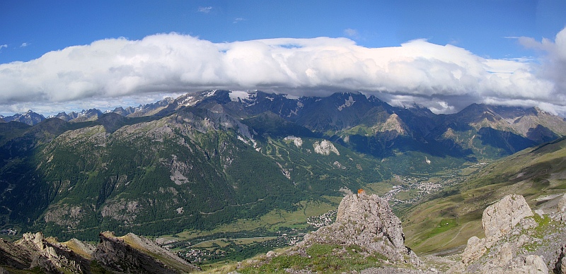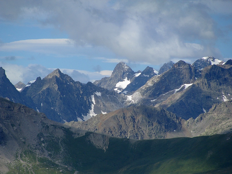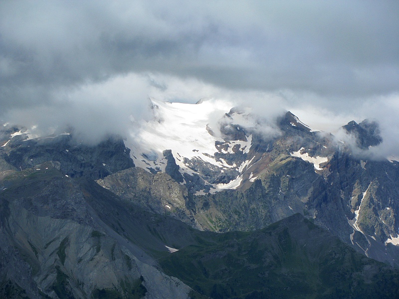 Drugi dzień we Francji zapowiadał się pomyślnie. Wreszcie obudziło nas słońce, mimo, iż było zimno. Widzimy na wysokości ponad 3000 metrów śnieg, po nocnych opadach. Ale pogoda nastraja pozytywnie. Wymeldowujemy się z nieciekawego kempingu w la Vachette – drogo i kiepskie warunki. Za godzinę internetu każą sobie płacić 4 Euro! Spadamy stąd. Jedziemy najpierw przez Briancon, miasto historii i sztuki, tak się reklamuje przy wjeździe. Jest to jedno z najwyżej położonych miast w Europie – ponad 1300 m. n. p. m. Na okolicznych górach aż roi się od starych – XIX wiecznych fortów obronnych, zbudowanych przeciwko Włochom. Miasteczko dzięki temu jest wpisane na listę UNESCO. Na rondzie znajdują sie rzeźby kolarzy – tędy często podąża Tour de France, tegoroczny – też. Dalej droga prowadzi najpierw na Grenoble, ale już za chwilę szukamy znaków na Col di Granon. Są. Szybko wspinamy się coraz wyżej. Widoki coraz ładniejsze, chociaż to, co chciałbym zobaczyć – la Meije, le Grande Ruine czy Barre des Ecrins przykrywa gruba chmura. Obok drogi, na placykach wiele kamperów czy namiotów, nie byłoby problemów ze spaniem na dziko. Wszystko do rozważenia. Ale na razie interesuje nas nasza góra – le Grand Area. Pokazuje się na wprost przed nami. Nawet ładna, gdyby przyszło iść z poziomu doliny, czekałoby ze dwie godziny porządnego podejścia, a tu, dzięki drodze mamy ponad 2000 m. n. p. m. Szukamy parkingu – jest nawet fajne, spore wypłaszczenie, nawet ujęcie wody i ławeczki. Po otwarciu drzwi – przykra niespodzianka – wieje zimny, przenikliwy wiatr. Zamiast wycieczki na lekko w podkoszuleczkach ubieramy zestaw zimowy – swetry i kurtki oraz czapka. Pozostałe mokre rzeczy z dnia poprzedniego pozostawiamy na słońcu, przykładamy kamieniami, niech wyschną. Z dala widoczny szlak prowadzi na szczyt. Najpierw piękną, ukwieconą łąką, potem już zaczyna się podejście, rzekłbym – w sam raz, ani nie za strome, ani zbyt łagodne. Szacowany czas wyjścia – 2 godziny. Widoki coraz ładniejsze, pojawia się charakterystyczny, trójkątny szczyt, myślałem, że to Monviso, ale po chwili sam siebie wyprowadzam z błędu, bo zza grani pojawia się kolejny, wyższy wierzchołek, to już na pewno Monviso – najwyższy w Alpach Kotyjskich. Znajduje się po włoskiej stronie. No, chociaż zobaczę jego, bo to, co chciałem zobaczyć w Alpach Delfinackich dzisiaj nie będzie mi dane – chmury nie podniosą się wyżej niż jakieś 3400 – 3500m. la Meije, Barre des Ecrins, le Grande Ruine, Agneaux – to co najlepsze w Delfinatach – schowane. Widzę tylko niższe, mniej atrakcyjne góry – jak le Sirac, Pointe l`Aigliere czy la Blanche. Generalnie, przed wyjazdem plan był inny – zdobycie trzytysięcznego Grand Galibier, ale przy takiej pogodzie mijałoby się to z celem, widzieć chmurę od środka? Nie, dziękuję. Szlak wyprowadza na boczny wierzchołek w le Grand Area. Ładny widok na Dolinę Romanche, ale wolałbym szczyty. Na przełęczy wieje taż, że porywa mi czapkę z głowy i ląduje ona paręnaście metrów niżej. Szwagier ją widzi i kieruje mnie na nią, przez piarżysko. Zimnica, ubieram wszystko, co mam w plecaku. Dalsza część szlaku już przy wtórze mocnego wiatru, moja ekipa rusza szybko, a ja swoim tempem drepczę w górę, co chwilę fotografując. Ludzi na szlaku coraz więcej. Szczyt jest dość popularnym celem, ze względu na łatwą dostępność i widokowość. Docieram do szczytu, a tu wiadomo, jeszcze mocniej dmucha, z trudem wykonuję panoramę szczytową, nadzieja na widoki w stronę północną pryskają, tworzy się chmura, jeszcze niższa, niż po stronie południowej. Jedynie daleko na południe widać czyste niebo, gdzieś w okolicach Aiguille de Chamberon. Tam pogoda ładna. Monviso nawet co jakiś czas ginie w chmurze. Na wschodzie mamy zaśnieżony Mont Chaberton. Dwa słowa o tej górze – na jej szczycie są pozostałości tym razem włoskich fortów obronnych – a to wszystko na wysokości około 3200 m. n. p. m.! Dawniej góra należała do Włoch, ale po przegranej II Wojnie Światowej przypadła Francuzom. Na szczycie nie spędzamy zbyt długo, wiatr z powodzeniem nas wywiewa stąd. Całość wejścia na szczyt, spokojnym tempem wyniosła około 1 godz. 45 minut. Jest dość wczesna godzina, a my mamy zaliczony wysoki szczyt i kupę czasu. Przy zejściu, osłonięci od wiatru, czekamy dłuższą chwilę na przejaśnienie, ale nic z tego. Przy zejściu znów dylemat – co robimy dalej? Zostajemy tu do jutra – rozbijając się gdzieś na dziko? Może dziś jeszcze zdobędziemy coś z Col di Granon? A jak się pogoda nie wyrobi? Schodzimy w dół, zbieramy przesuszone rzeczy, robimy popas – pytanie do grupy – zostajemy, czy jedziemy pod Mont Blanc? Najwyższa góra ma jednak największą siłę przyciągania. Udajemy się pod nią. Jeszcze ostatnie pakowanie i w drogę. Ruch na drodze w górę coraz większy, wielu rowerzystów, a my jeszcze raz rzucamy okiem na le Grand Area. Wkrótce docieramy do dna doliny, przez Briancon, naszą miejscowość z kempingiem – la Vachette i na przełęcz Col di Montgenevre. Pod drodze jeszcze ładny widok na Alpy Kotyjskie, w Montgenevre – na Mont Chaberton. Jeszcze mała chwileczka i już jesteśmy we Włoszech. Teraz zjazd w dół, serpentynami. Przed nami jedzie ciężarówka z przyczepą, cała wyładowana kostkami z sianem. Na zakrętach tak się przechyla, że zdaje się wywrócić. Nie ma możliwości jej wyprzedzić, na szczęście w jednym z małych miasteczek skręca w bok. Podążamy doliną Val di Susa – gdzie jeszcze nie tak strasznie dawno – w erze Małysza – rozgrywały się zimowe Igrzyska Olimpijskie z główną siedzibą w Turynie. W oddali widać tory saneczkowe, w Sestiere trasy zjazdowe. W bok prowadzi inna droga do Francji – przez Co di Frejus. A my opuszczamy Val di Susa niezliczoną liczbą tunel