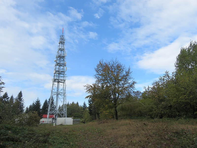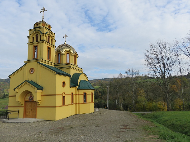 Potem powróciłem na szlak i podszedłem jeszcze na sam szczyt Maślanej Góry uwieńczony masztem przekaźnika. To chyba jedyna atrakcje tego miejsca, bo widoków brak, a na przekaźnik wstęp wzbroniony. Będąc w Szymbarku polecam trochę zboczyć z głównej drogi i pojechać do Bielanki, gdzie możemy zobaczyć ładną, nową cerkiew. Można też pojechać dalej nad Jezioro Klimkowskie lub do starych cerkwi w Kunkowej.