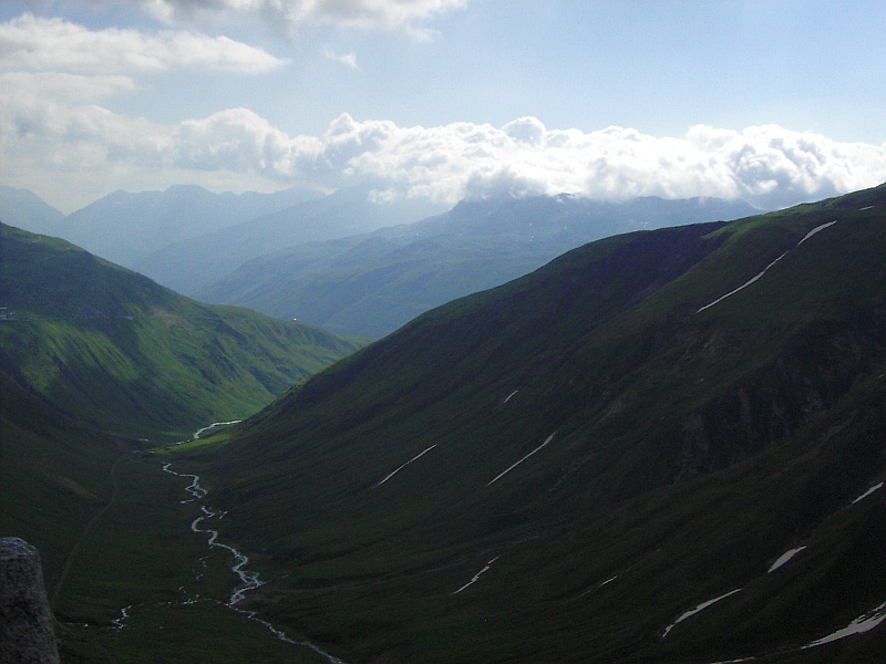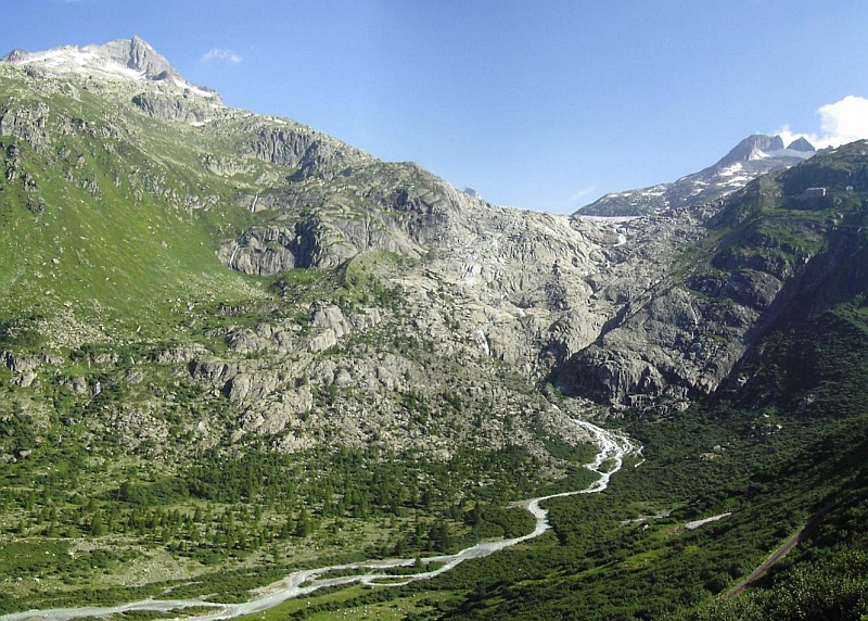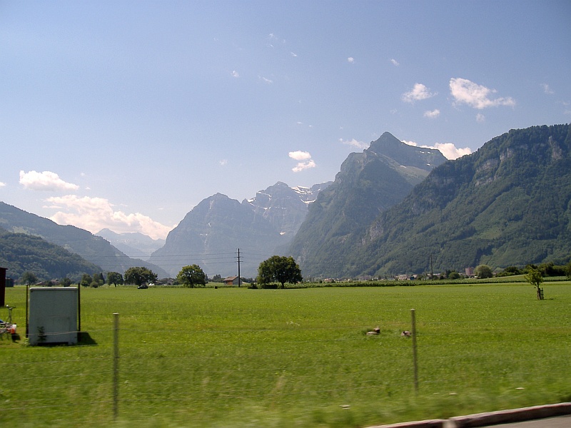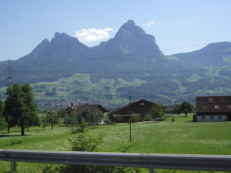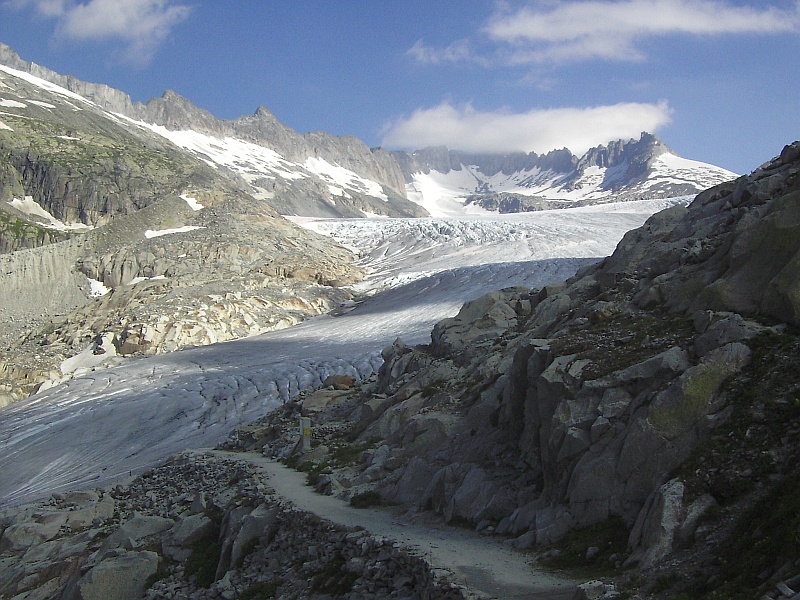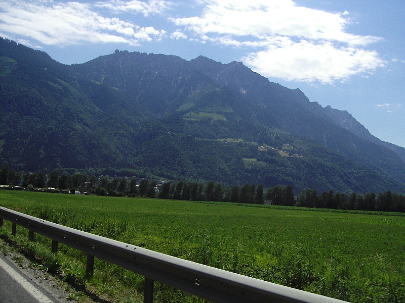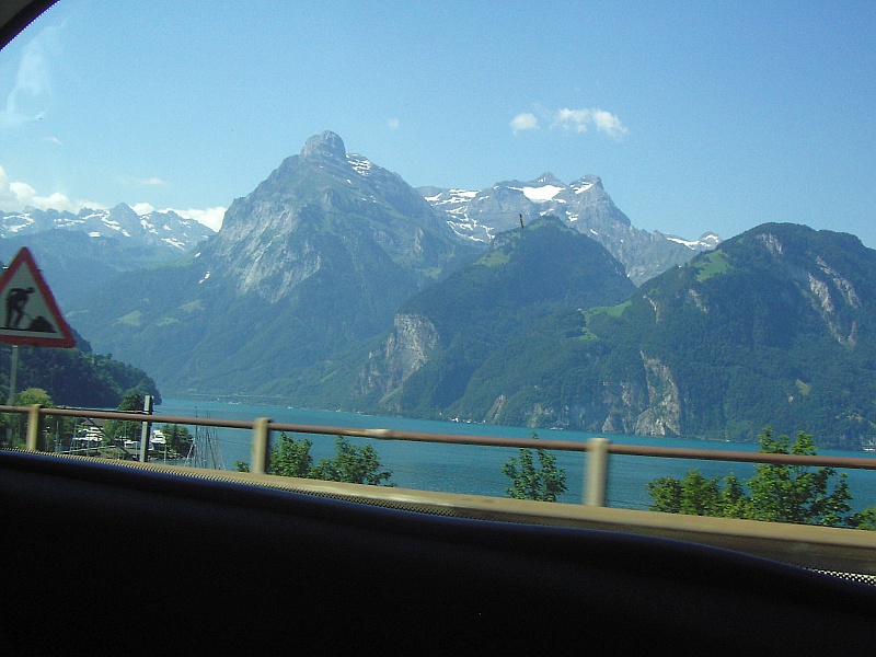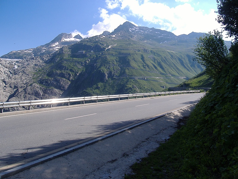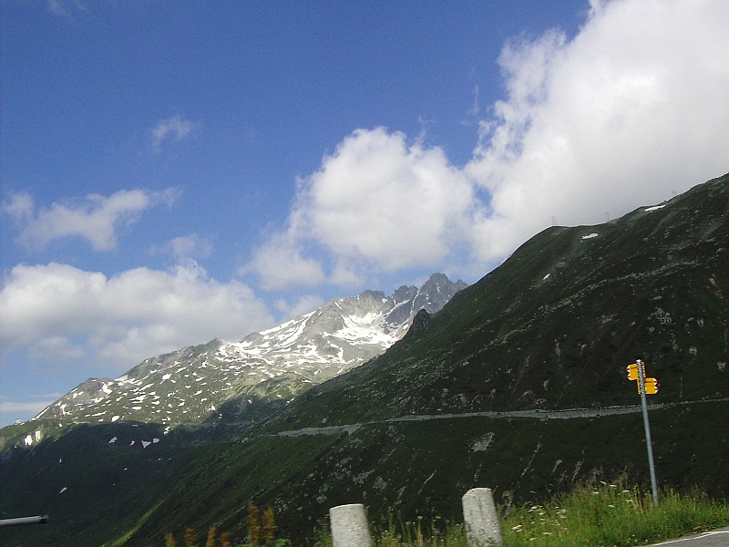 Ostatni dzień w Szwajcarii to już nie chodzenie po górach, tylko trasa w kierunku Austrii. Postanowiliśmy tym razem drogę podzielić mniej więcej na pół i dojechać gdzieś do Austrii. Tym bardziej, że na dziś po południu zapowiadane było załamanie pogody. Więc wysoko w góry się nie pchaliśmy. Zresztą plan zrealizowaliśmy w 100%, pogoda tez była na full, a sami czuliśmy trudy poprzednich intensywnych tras. Spakowaliśmy się, wymeldowanie z campingu i w drogę. Jeszcze ostatnie widoki na Alpy Walijskie, już za mgiełką, widoczność się pogarszała, zaczęły pojawiać się cumulusy. Rozpoznaliśmy Weisshorn. Mijamy kolejne miejscowoście regionu Goms, Czasem z przodu wyłania się Galenstock – Alpy Urneńskie. Zaczyna się podjazd na Gletsch – skrzyżowanie dróg na dwie wysokie przełęcze alpejskie: Furka i Grimsel. Tym razem w odróżnieniu do drogi przyjazdu pogoda jeszcze dopisuje, więc odbijamy sobie widokowe niepowodzenia i oczywiście trzaskamy zdjęcia. Teraz jedziemy w kierunku Rhone Glestscher – lodowca Rodanu. Zatrzymujemy się nad piękną doliną górnego Rodanu. W oddali widać czoło lodowca z którego bierze początek ta rzeka. Wrażenie robi też trasa wiodąca po stokach. Jedziemy dalej, do hotelu Belvedere. Tutaj jest parking – co nietypowe – bezpłatny. Podchodzimy na dach restauracji nad lodowcem i mam stąd na niego ładny widok. Najwyższe szczyty już w chmurach, ale jeszcze widoczność niezłą. Z popękanego czoła lodowca bije z ogromną siła wodospad – początek Rodanu. Grzbiet ograniczający lodowiec jest zarazem działem wodnym między Morzem Śródziemnym a Morzem Północnym. Widzimy na lodowcu jakiś badaczy, opuszczających się na linie w szczelinę. Spędzamy dłuższą chwilę z pięknymi widokami i potem ruszamy dalej, na przełęcz Furka. Początkowo mieliśmy zamiar zaatakować stąd kolejny trzytysięcznik – Klein Furkahorn, ale niski pułap chmur spowodował rezygnację, i tak nie z niego nie ujrzelibyśmy, a po drodze niewiele więcej niż z samej przełęczy. Jeszcze ostatnie widok na Alpy Berneńskie i Finteraarhorn, niestety nie zrobiłem fotki. Teraz już jazda w dół, do Andermatt. Kolejne serpentyny. W dolinie dymi ciuchcia wąskotorowe – turystyczna atrakcja – przejażdżka z widokami na Alpy. Teraz Hołek – GPS – kieruje nas w stronę autostrady, ale jeszcze zjazd kolejnymi niesamowitymi serpentynami, gdzie na przemian droga z torami biegnie to tunelem, to wiaduktem, to galerią antylawinową. I tak docieramy do autostrady – jedziemy granicą między Alpami Urneńskimi po prawej a Glarneńskimi – po lewej, góry już coraz niższe, znikają szczyty lodowcowe. Potem znów ładny widok – turkusowe Jezioro Czterech Kantonów z górującym nad nim szczytem Uri Rostock – jedyny z lodowcem. Jeszcze widok na Klein i Gross Muthen – charakterystyczne wapienne piramidy (już nieco poniżej 2000 m) i opuszczamy Alpy, krajobraz zmienia się na wyżynny. Po zatankowanie znów wkraczamy w Alpy nad Zurich See, teraz są to wapienne grzbiety, o wysokości coś ponad 2000 m. Jeszcze chwila i docieramy do Liechtensteinu. Jak zwykle przemierzamy ten kraj niepostrzeżenie, i Austria. Teraz czas na posiłek, na parkingu z widokiem na Rote Wand w alpejskie grupie Bregenzer Wald. Po drugiej stronie na parkingu ciekawostka – autokar na czeskich numerach z całą kupą hindusów – czyżby Bollywood? Pogoda cały czas jeszcze niezła, nawet upał, ale klima w aucie robi swoje. Teraz już jedziemy wzdłuż Austrii mając bo obu stronach różne pasma, korzystam i staram się robić przynajmniej po 1 fotce w czasie jazdy każdej grupy górskiej – a mamy po kolei: Ratikon, Alpy Lechtalskie, Silvretta, Otztalskie, Stubajskie, Karwendel, Rofan. Zarzucamy też plan przejazdu płatną trasą Silvretta, bo w dali widać już chmury frontu. W Innsbrucku tuż przed nami miała miejsce kolizja Forda Focusa z Jaguarem. Pakujemy się na chwilę w Niemcy, po lewej płasko, a po prawej pasma niemieckich pogórzy alpejskich. Mijamy jezioro Chiemsee. Ruch duży – to piątek, pewnie ludzie wracają z pracy albo jadą na weekend. Przy granicy z Austrią – koło Salzburga – nad Alpami wisi ogromny cumulonimbus z deszczem i burzami. Docieramy do Attersee i jeszcze udaje się nam zażyć kąpieli w tym jeziorku i w miejscowości o tej samej nazwie „zakampingować” się.