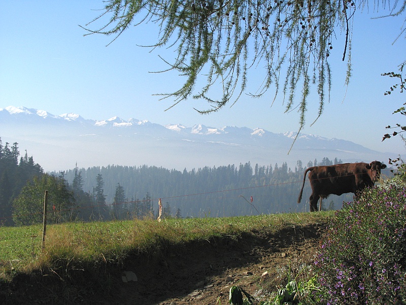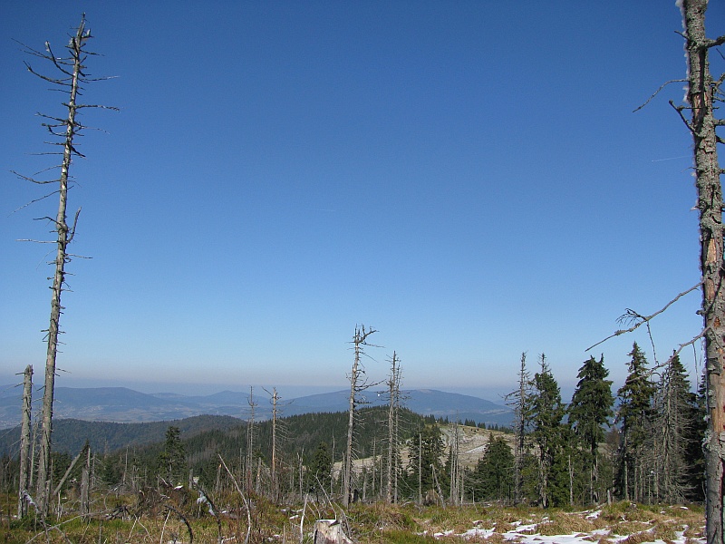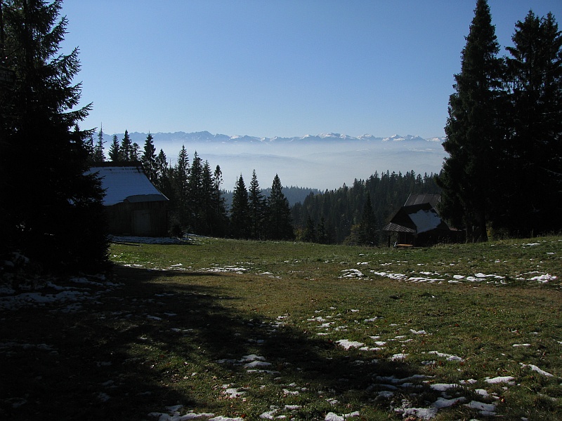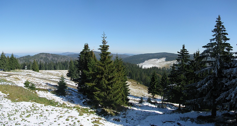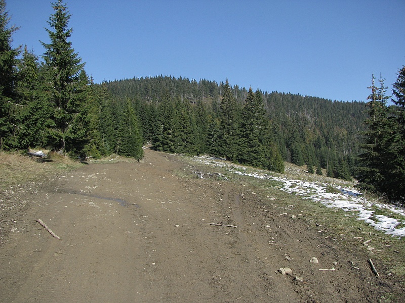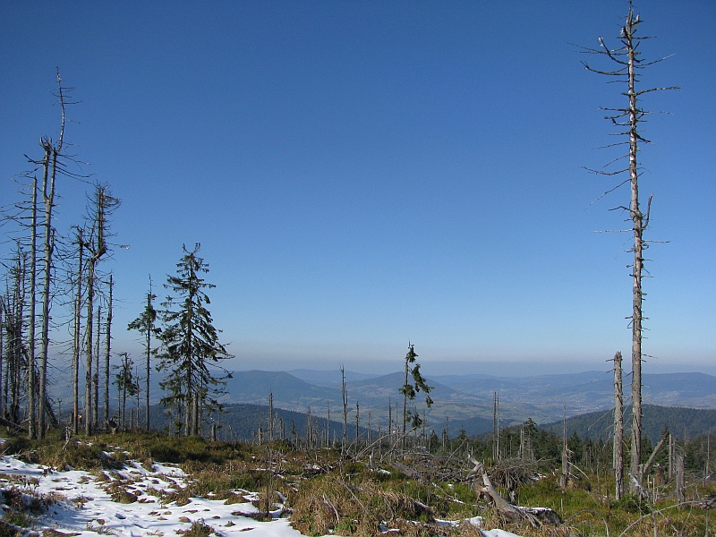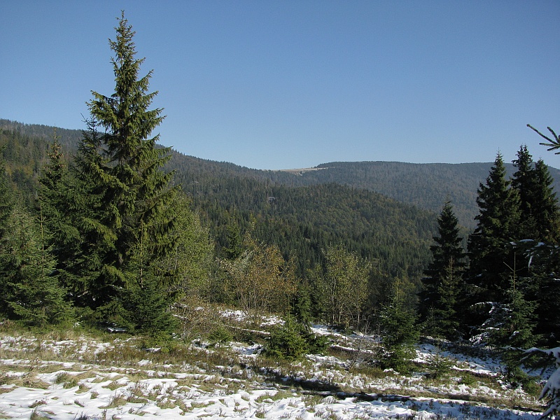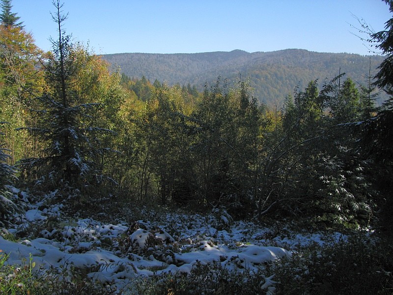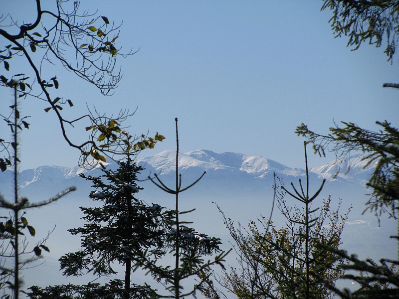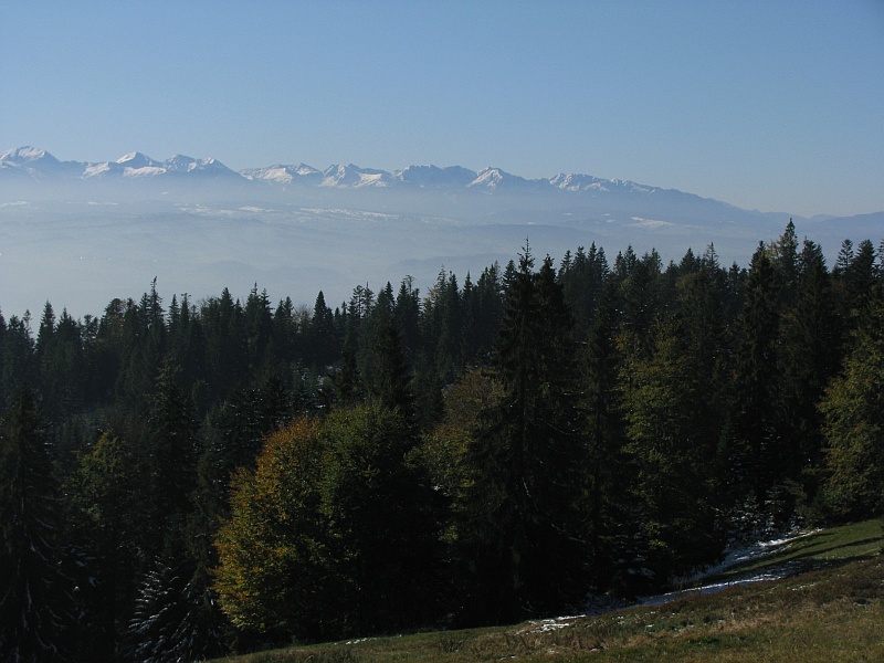To była chyba najbardziej błotna wycieczka w moim życiu. Wybrałem się na nią z moją klasą. Jedna z opiekunek zachorowała na grypę żołądkową, dlatego też została w samochodzie na dole, dając nam pod opiekę swojego 6-cio letniego syna!!! Ale był dość dzielny. Trasa – z Łopusznej, najpierw do przysiółka Zarębek Wyżni – stąd ładny widok na Tatry i Pasmo Lubania. I tyle by było bez błota. Potem na przemian – w cieniu październikowy śnieg, a w słońcu październikowe błoto. I w wielu miejscach nie było opcji ominięcia go…