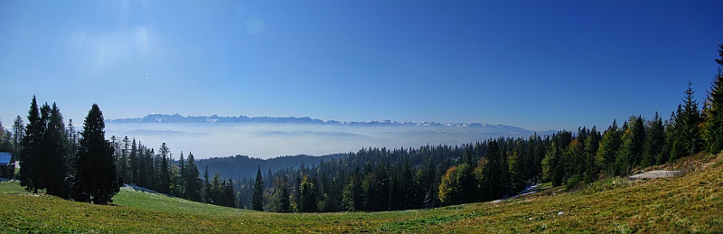 Na Waksmundzkim Wierchu wspaniała panorama całych Tatr od północy. Tutaj dłuższa chwila na podziwianie widoków. Dalej już niezbyt stromo, ale błotniście aż do schroniska pod Turbaczem. Z podwórza ciekawy widok na Pasmo Lubania, Długą Polanę i Mogielicę. Po odpoczynku króciutki odcinek na wierzchołek Turbacza. Dzięki temu, że las jest rzadki i połamany pewnie przez wichury, mamy widok na Beskid Wyspowy – Luboń, Lubogoszcz, Śnieżnicę.